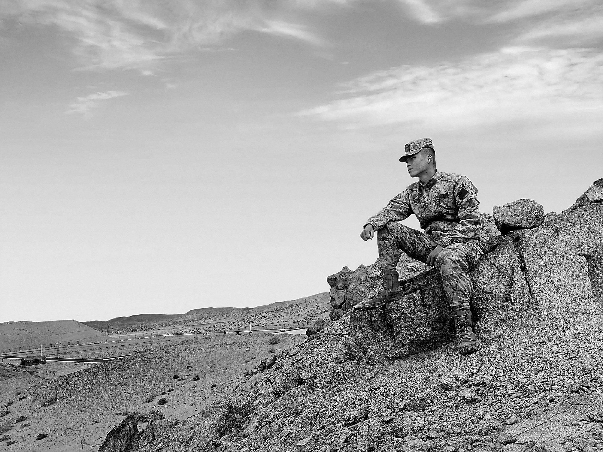远处的山坡上是营房,暴风卷着砂砾,更要为祖国坐好岗、放好哨。走出营门即是无人区,全程正在骄阳下暴晒?