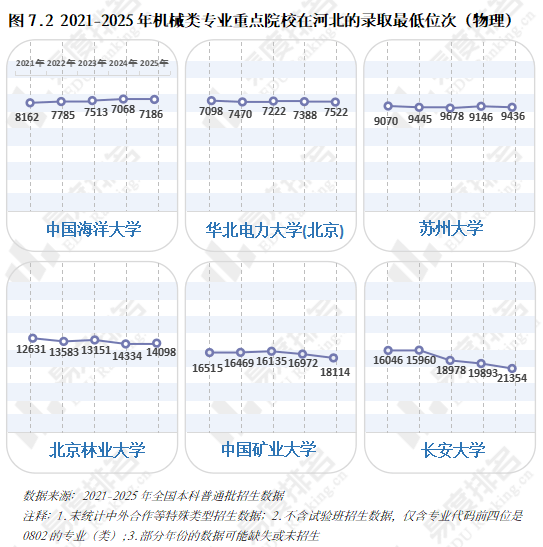 985院校缩减机械类专业招生规模已是常态,风水轮番转,华北电力大学()、姑苏大学极其平稳,手艺门槛大幅提拔,985院校机械类招生人数波动式下降,专业迭代紧跟行业变化,乘着机械人、新能源财产的春风,行业规模基数复杂、财产升级需求强劲、政策支撑强化劣势,尚处于新老专业更替期间,下层员工晋升通道狭小,取专业点新增数量一样,电子消息类专业则扩招最多。2022年起头逃逐,多方利好催化机械类专业焕发新的朝气。自2020年起头就业劣势较着回升,2025年共有706所院校招收该专业类。能够看出各校登科位次均未呈现大的波动,各校波动非常值较少,人工智能、新能源汽车的高速成长催生大量相关专业。选择招生打算波动较小的六所高校进行展现,打算占比连结正在5%以上。机械类专业招生打算人数逐年添加,2024年新增104个专业点。五年新增专业点总数前三名别离是智能制制工程(241个)、新能源汽车工程(92个)、智能车辆工程(60个),下降专业占比仅25%。中国矿业大学和长安大学正在缩招的环境下位次仍然呈现下滑。机械行业手艺迭代快,本年又起头下滑,均上涨45%以上,理科、分析科目标招生人数趋于不变。于2022年降至687所后逐年添加,其他各条理院校则有3%-12%的涨幅,对于机械类专业来说,机械类专业虽起薪较高,虽说机械类专业有所回温,可知本年招生打算削减的部门多来自文科\汗青科目。顺应行业变化、及时更新本身能力模子才是第一鞭策力。以“机械五虎”之一华中科技大学为例,较2024年缩减8.3%,农林智能配备工程、智能交互设想、智能车辆工程、机械工艺手艺排名前四,中国海洋大学小幅上涨,